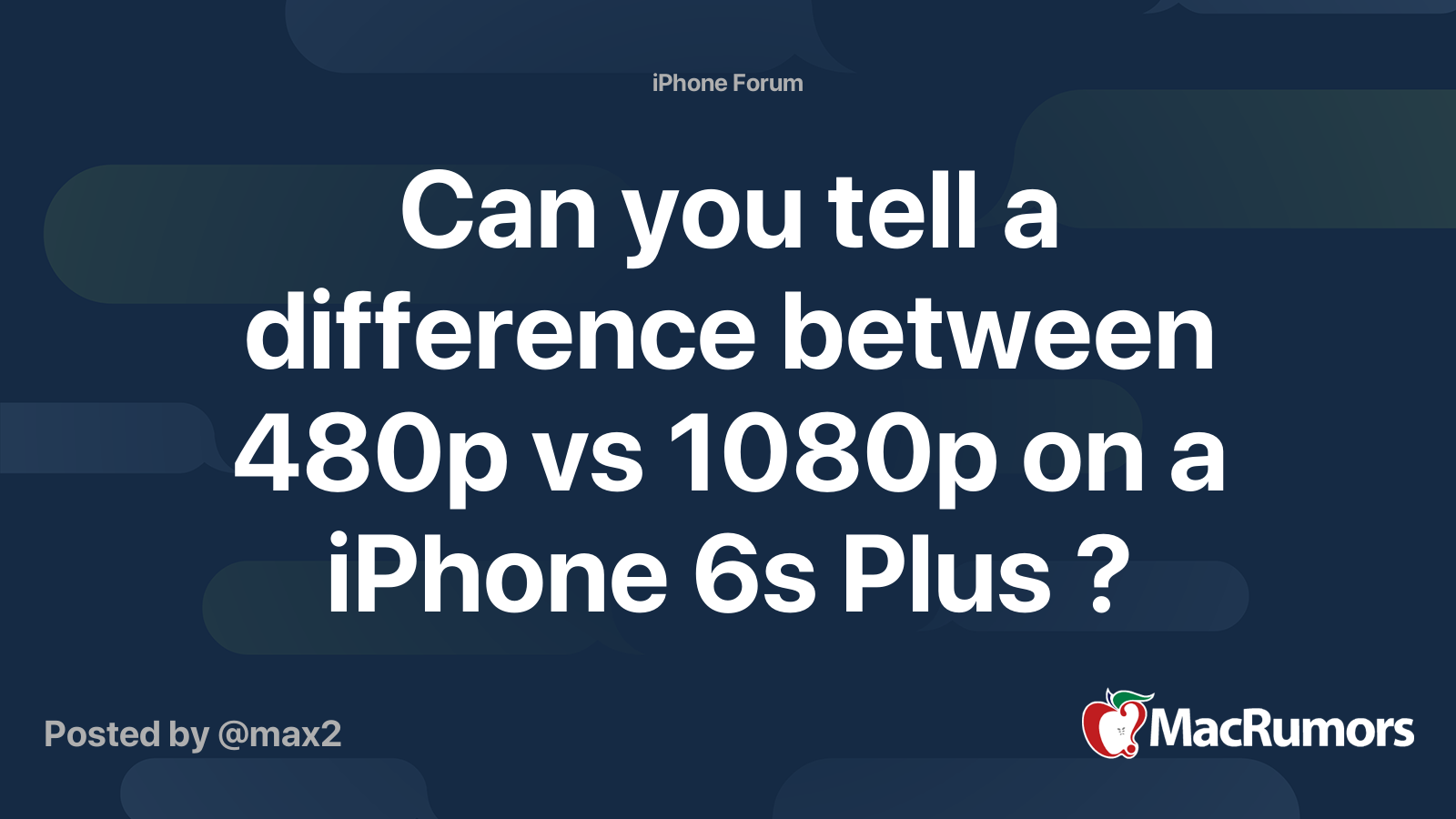 Can You Tell A Difference Between 480p Vs 1080p On A Iphone 6s Plus Macrumors Forums